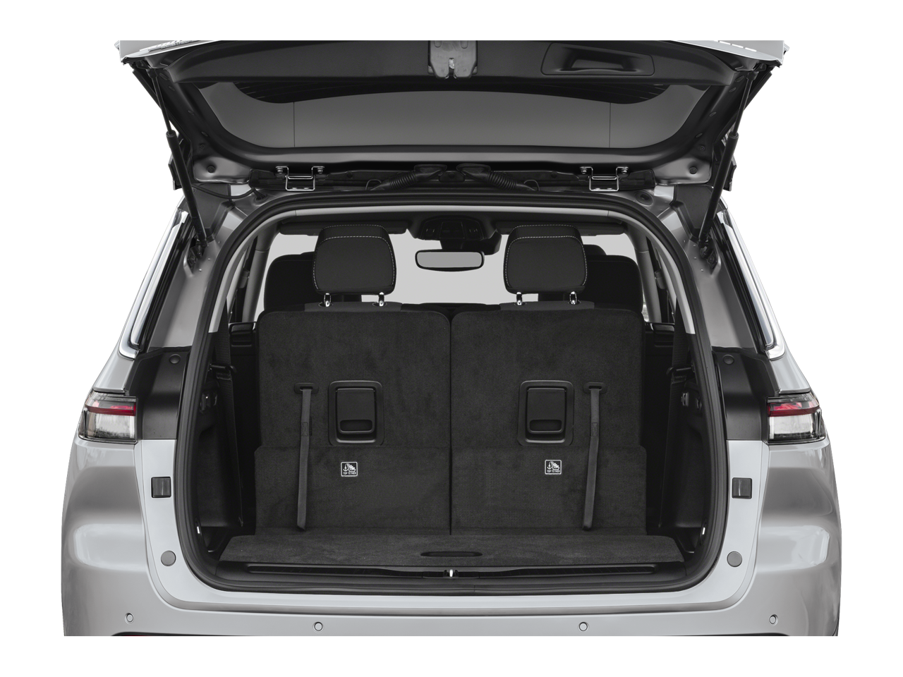 - Access to the cargo area is gained via a large, power-operated rear door that opens upwards. This door may also contain the rear windshield of the vehicle.