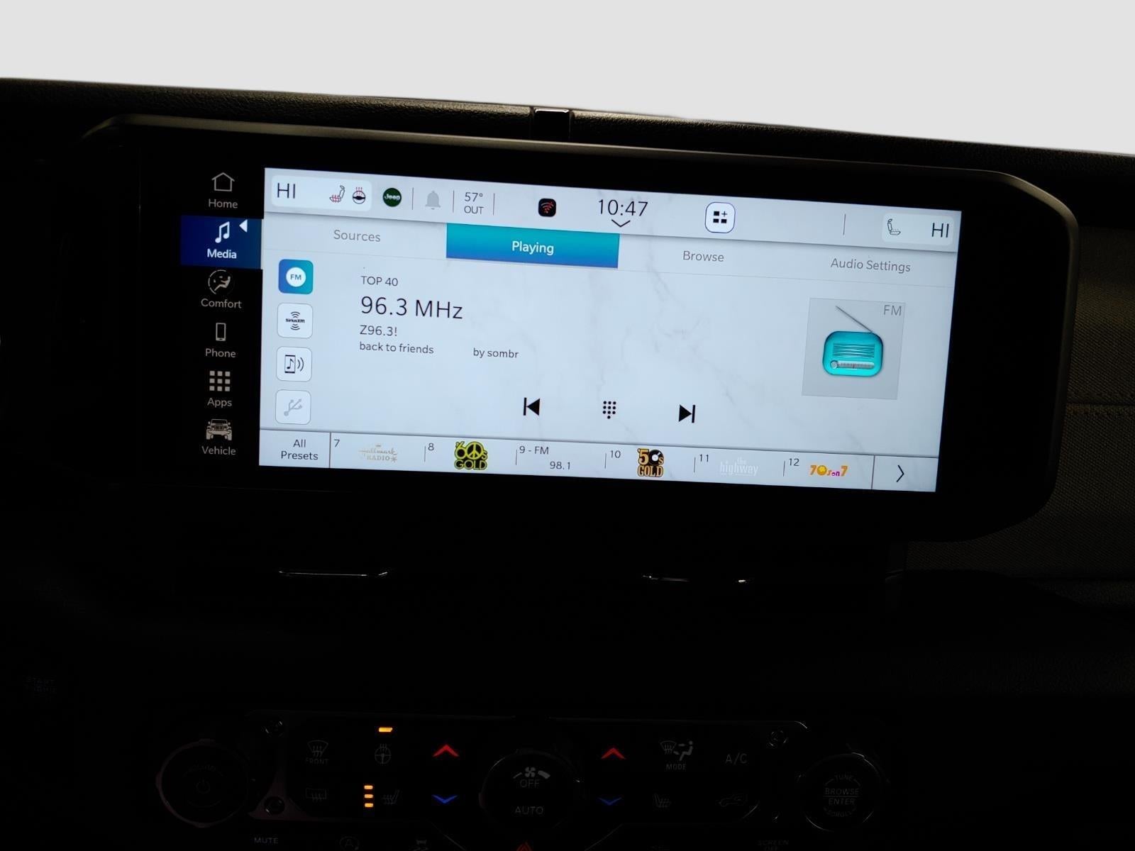 - The steering wheel rim is heated.